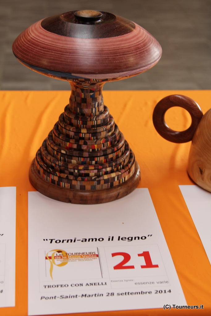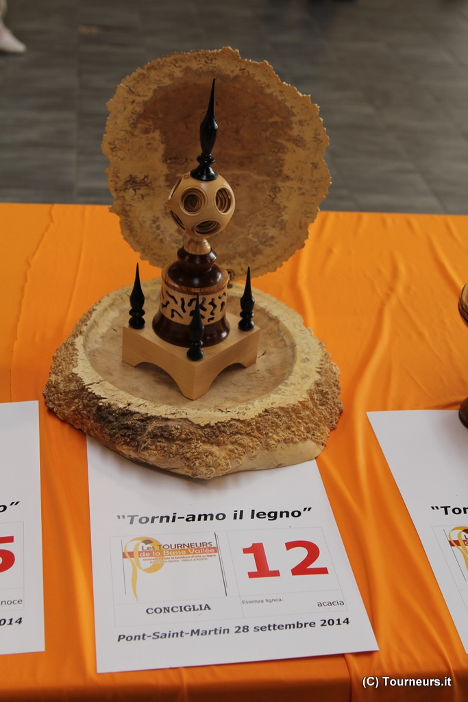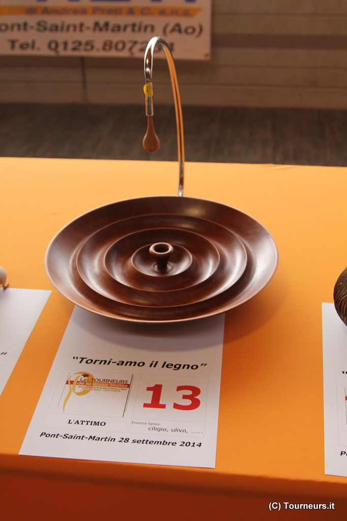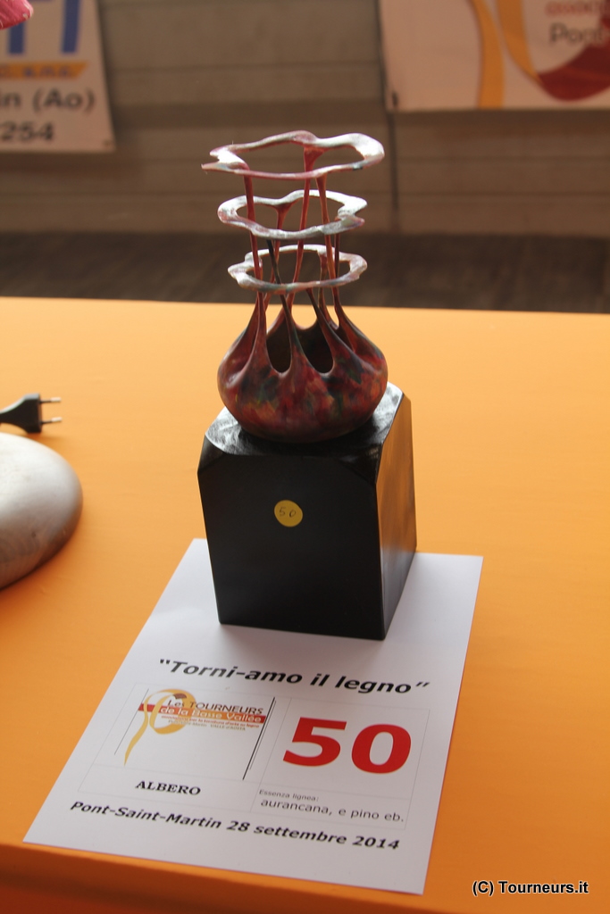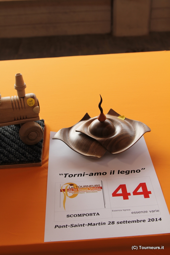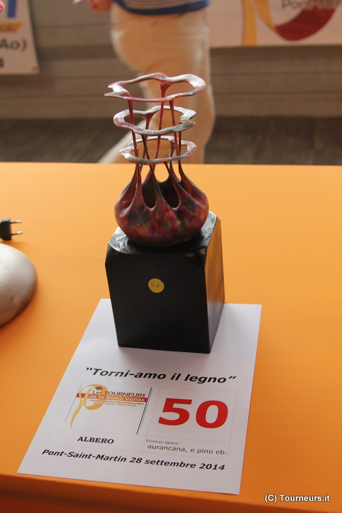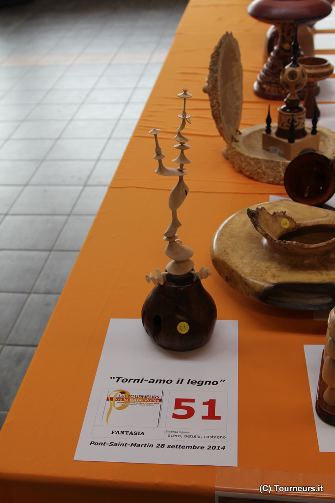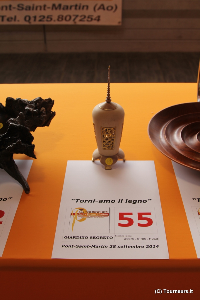 Pregevole la presentazione delle 56 opere da parte di 38 tornitori provenienti da Toscana, Trentino, Lombardia, Liguria, Piemonte e Valle d’Aosta, che vedono impiegate una grossa varietà di tecniche di realizzazione e di finitura e un grande utilizzo di variegate essenze lignee.