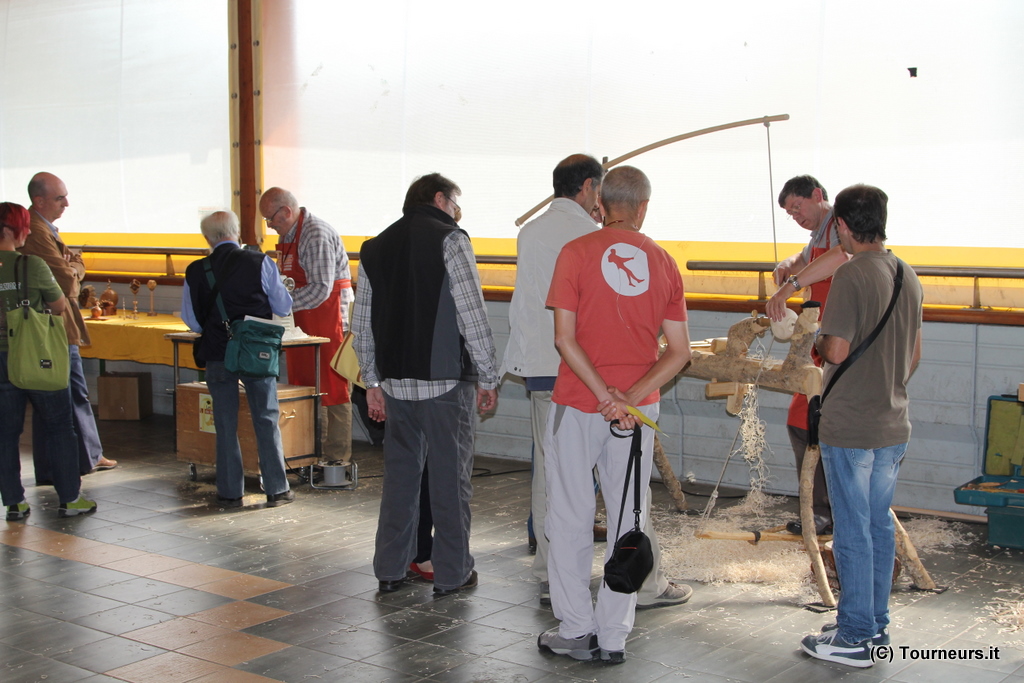 Buono anche l’apprezzamento per i nostri torni auto costruiti: dal tornio ecologico a bicicletta, al tornio medievale mosso a spinta su pedali sino ad un tornio in legno ma mosso da un motore elettrico.
