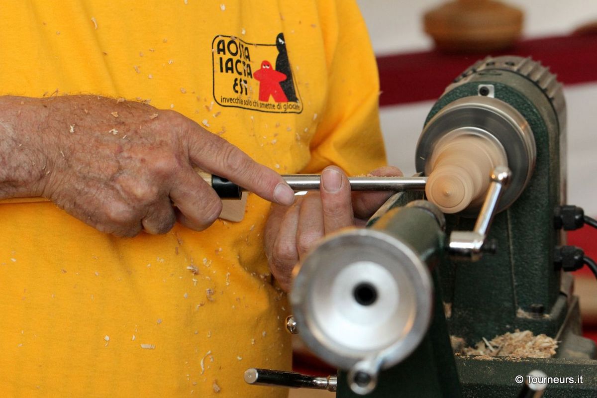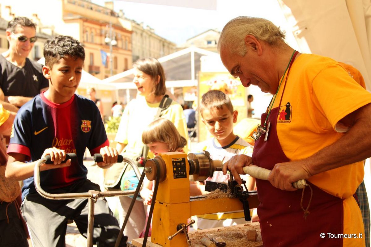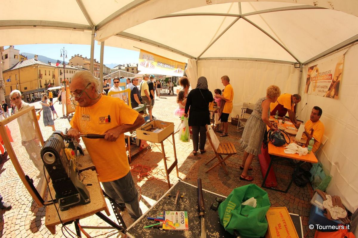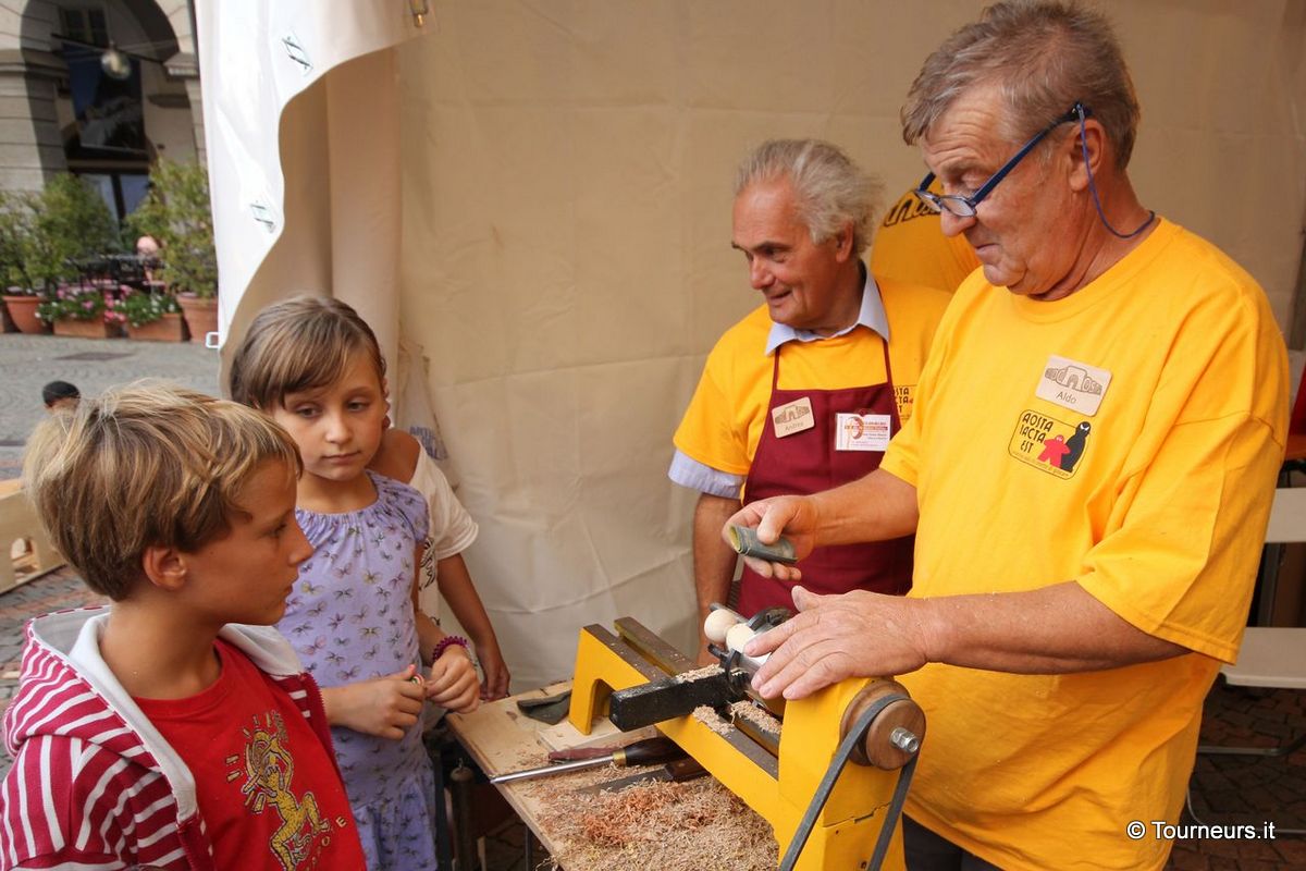 La meravigliosa piazza si è trasformata per 3 giorni in una “immensa ludoteca dove gli adulti ritrovano il piacere ed il valore del gioco. Perché invecchia solo chi smette di giocare”. Interamente ideato, progettato e realizzato da: AOSTA IACTA EST ha visto la nostra partecipazione ed è stata molto lusinghiera la descrizione apparsa nel programma della manifestazione: ” L’Associazione Les tourneurs de la Basse Vallée recupera la manualità del lavoro al tornio e la trasmette tra le generazioni, realizzando manufatti davanti agli occhi dei visitatori e riportando in piazza i gesti della tradizione”.